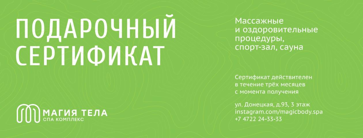 Закажите подарочный сертификат и ваш близкий человек самостоятельно посетит любые процедуры. Любой номинал сертификата можно использовать для погашения любой процедуры из нашего меню. Сертификат действует в течение 3-х месяцев.